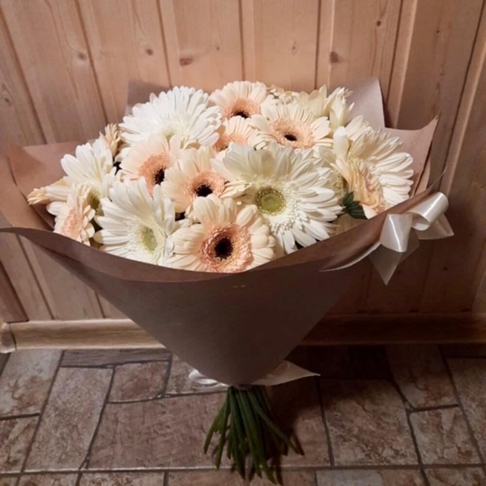 Гербера мини – 20 шт.Крафт упаковка – 1 шт.гербера крупная – 9 шт.