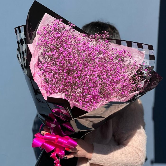 Нежный букет из гипсофилы в стильном оформлении Black Edition