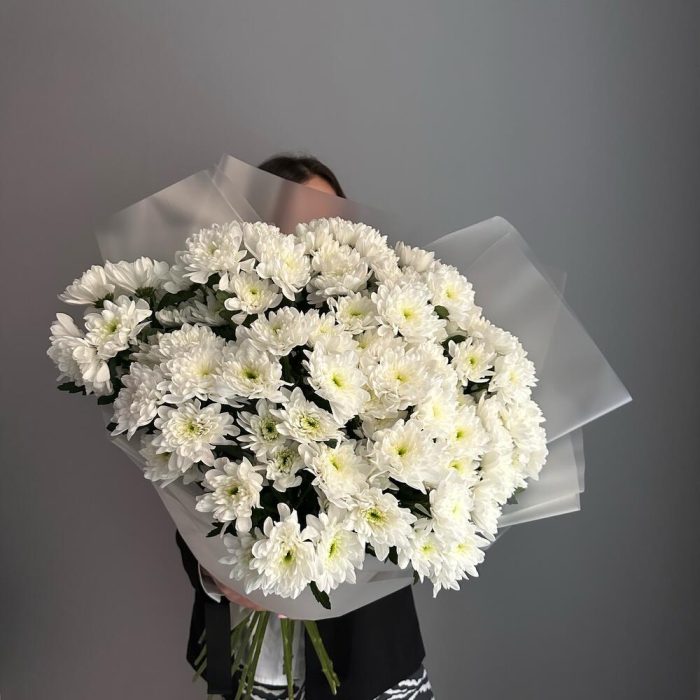 Хризантема кустовая белая – 15 шт.Упаковка дизайнерская – 5 шт.