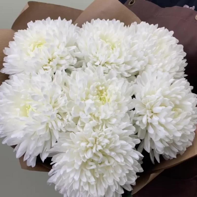 Хризантема – 7 шт.Лента атласная – 1 шт.Крафт упаковка – 1 шт.