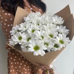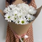 Букет из 3 белых кустовых хризантем в стильной упаковке