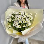 Хризантема кустовая – 7 шт.Лента атласная – 2 шт.Упаковка дизайнерская – 5 шт.