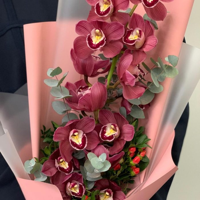 Орхидея Цимбидиум – 1 шт.эвколиптом – 1 шт.Гиперикум – 1 шт.Дизайнерская упаковка – 3 шт.