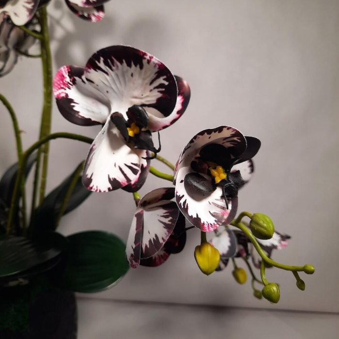 Кашпо керамическое – 1 шт.Мох стабилизированный – 3 шт.орхидея фаленопсис ветка искусственная – 6 шт.