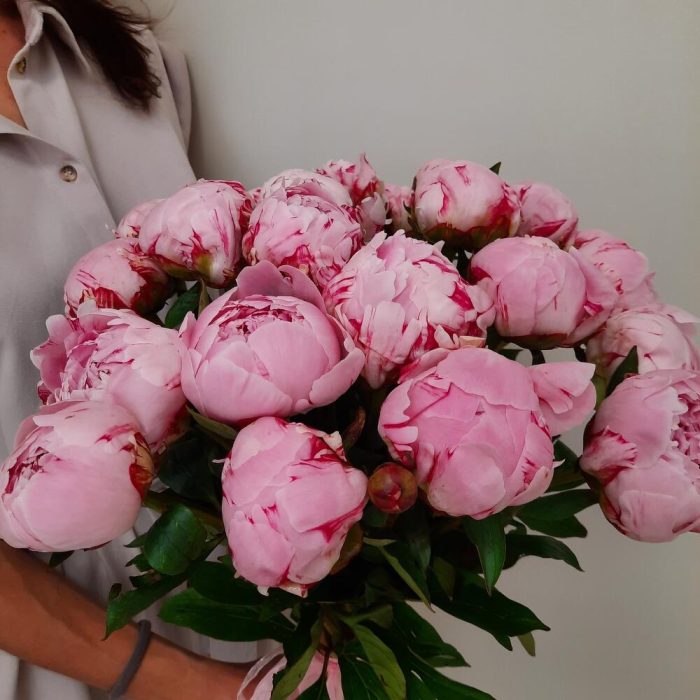 Пион Сара Бернар – 21 шт.Лента атласная – 1 шт.