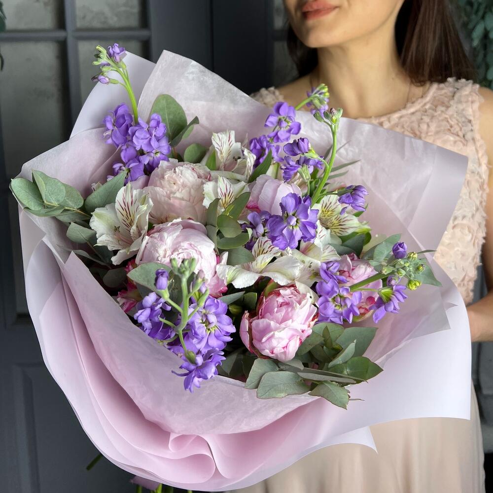 Букет “Marria” пион Маттиола эвкалипт