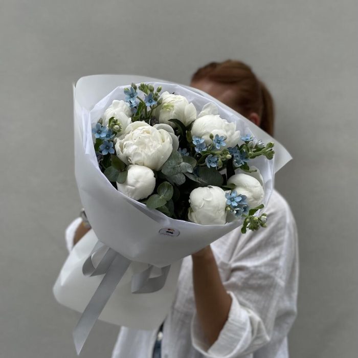 Освежающий букет из голландских пионов и экзотичной твидии.