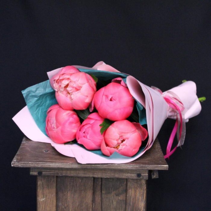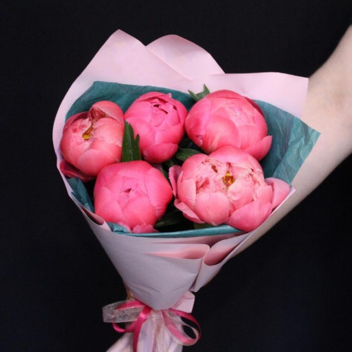 mono bouquet 79 из 5 пионов сорта coral charm