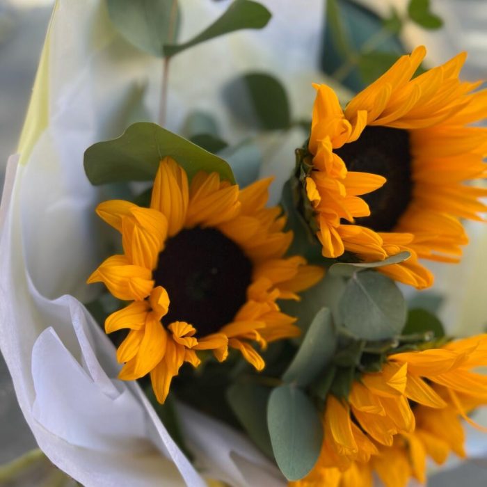 Эвкалипт – 3 шт.Тишью – 1 шт.Подсолнух – 3 шт.Пленка дизайнерская – 2 шт.бичевека натуральная – 1 шт.