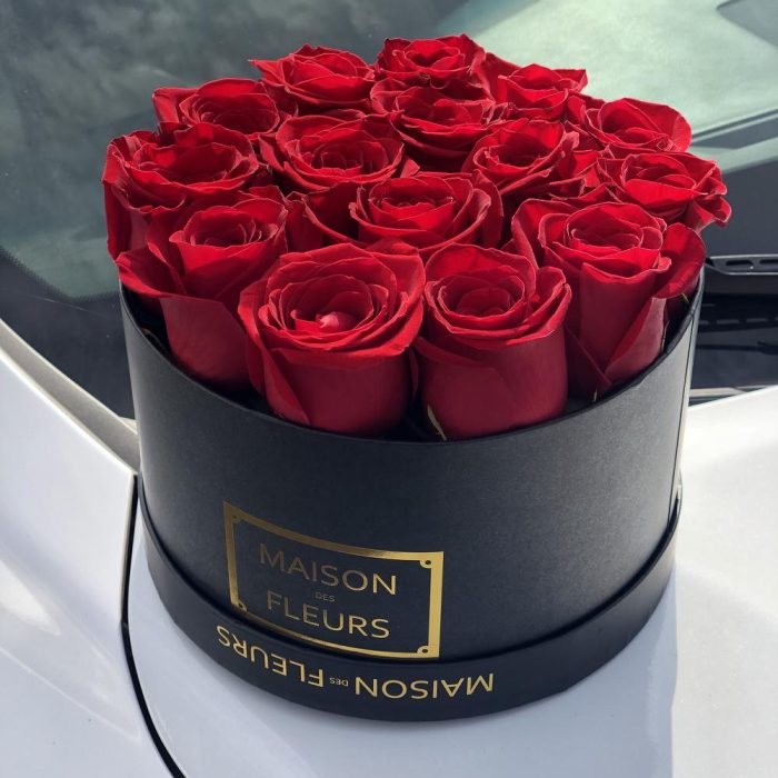 Стильная фирменная Коробочка из 15 Красных роз. Классический вариант подарка на любой повод.