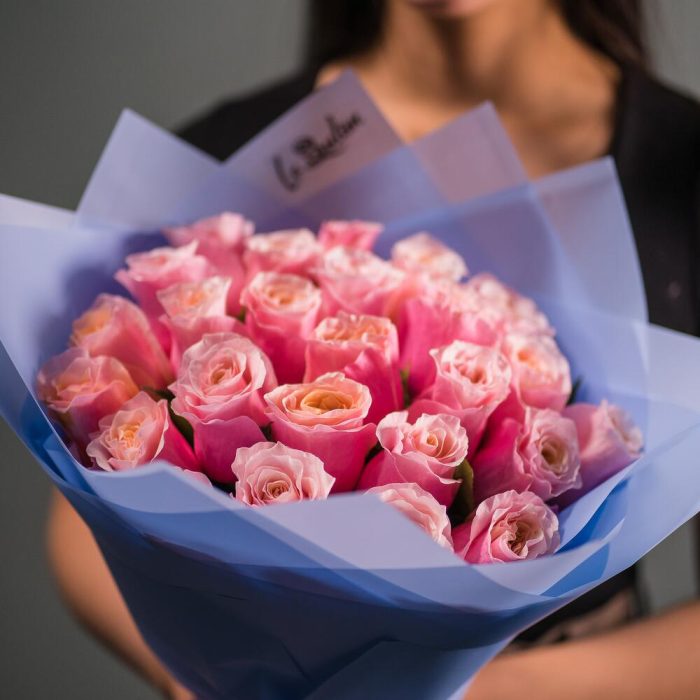 Роза – 25 шт. аквабумага – 1 шт. Атласная лента – 1 шт.