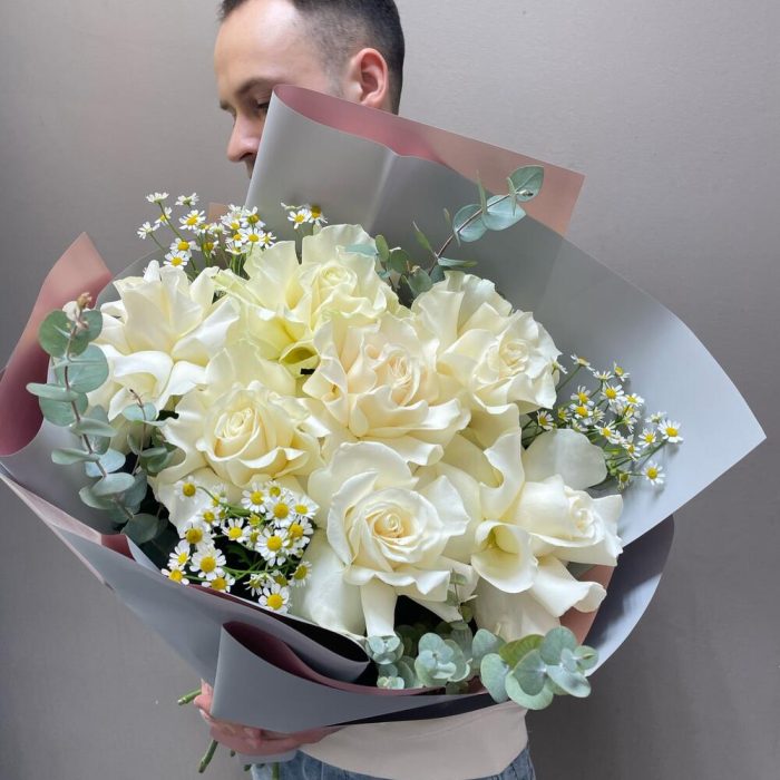 Авторский букет с белой французской розой