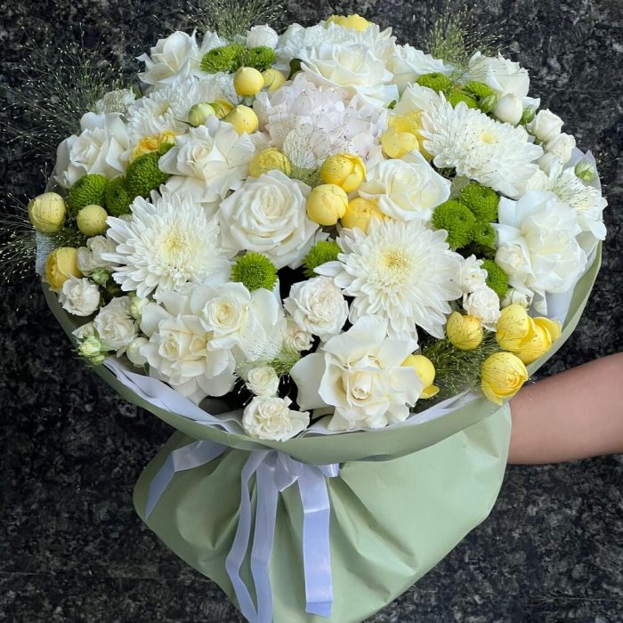 Авторский букет с добавлением жёлтых оттенков