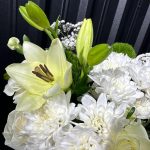 Белый авторский букет словно изящный танец света и чистоты. Изысканно переплетаясь, белые розы, каллы и лилии создают образ нежной элегантности, наполняя воздух сладким ароматом и сиянием свежести. Этот букет словно поэзия из белоснежных красок, в которой каждый цветок является чистым выражением вечной красоты.