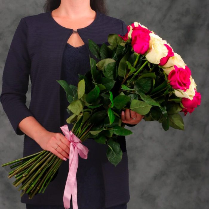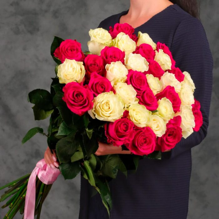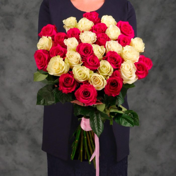Букет 35 белых и розовых роз