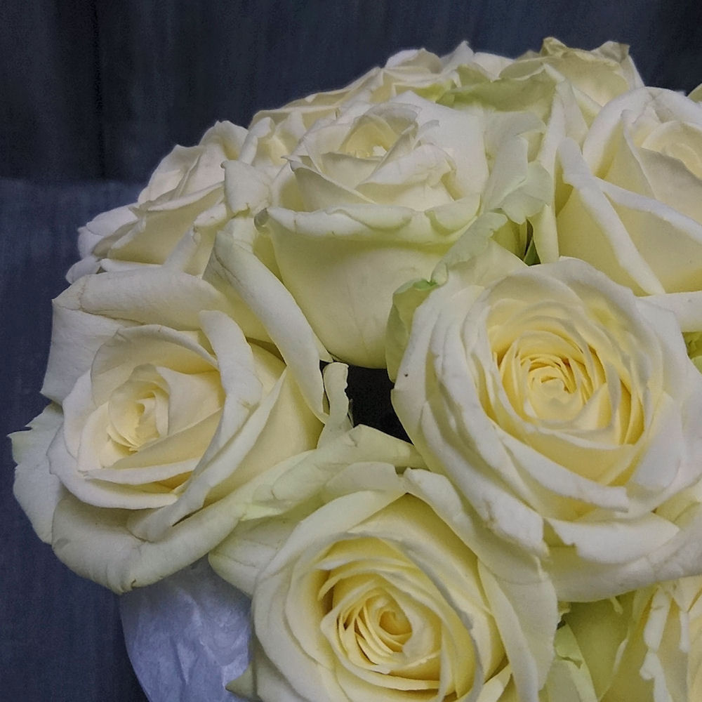Букет из белых роз в шляпной коробке "Светлые чувства"