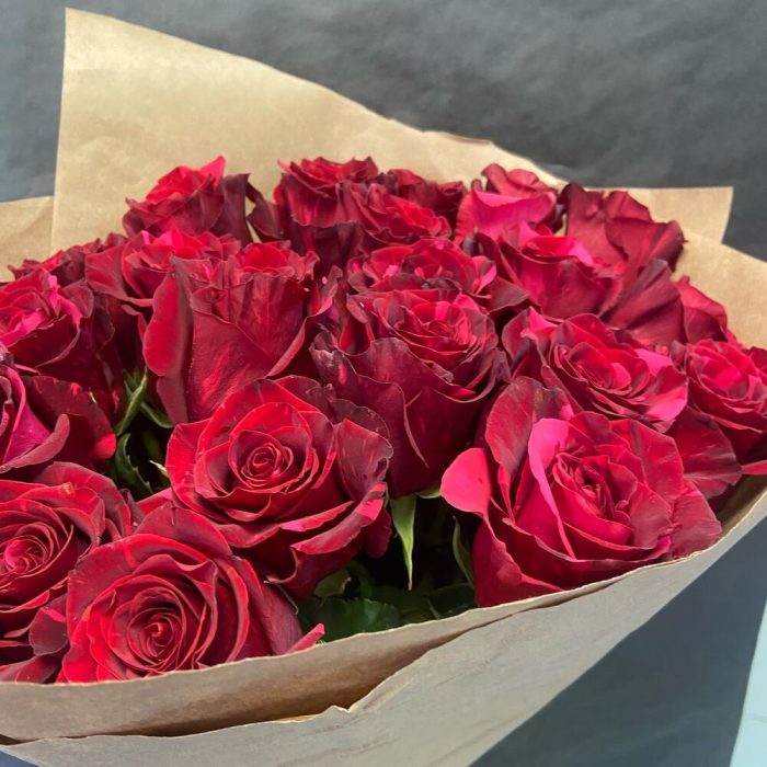 Лента – 1 шт.Роза красная – 23 шт.Упаковка – 2 шт.