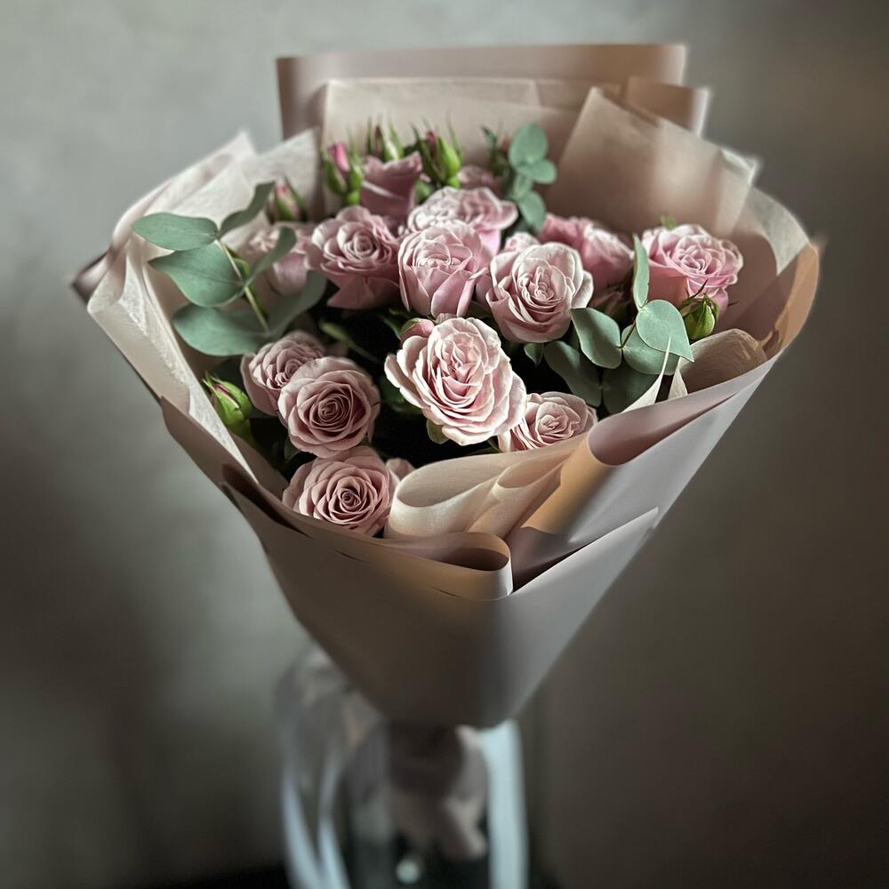 Букет из кустовой ароматной розы и эвкалипта