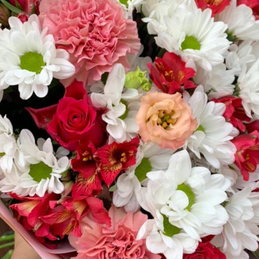 Категорий: Альстромерии, Гвоздики, Кустовые розы, Лизиантусы, Розы, Хризантемы