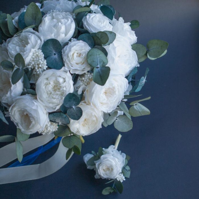 “Эвкалиптическая роскошь” гортензия и пионовидная кустовая роза