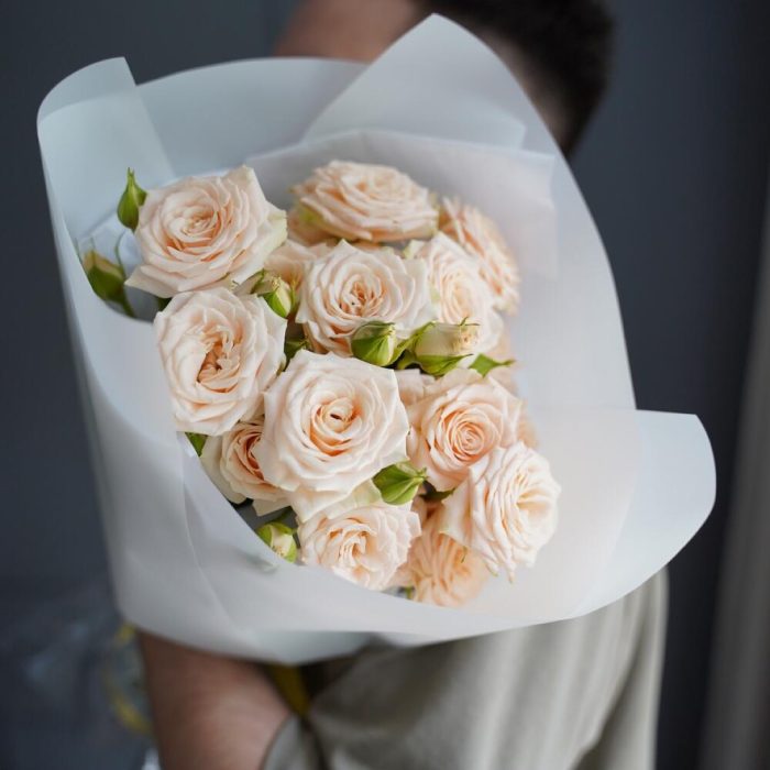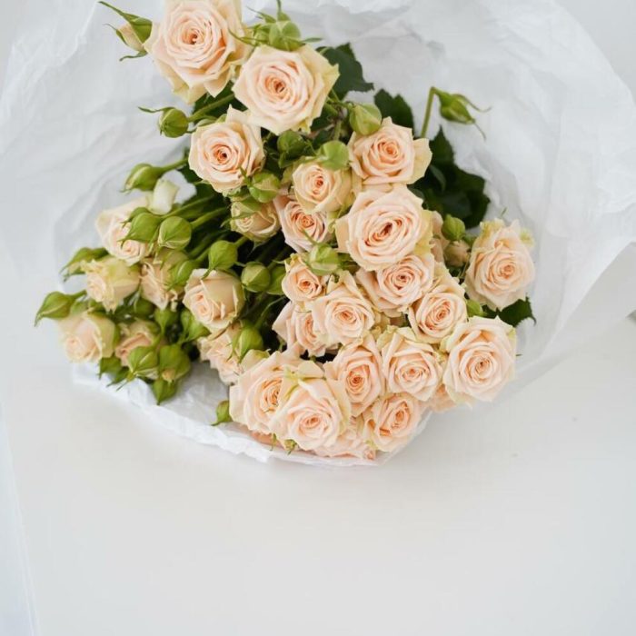 Монобукет из кустовой розы персикового цвета