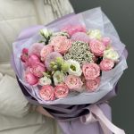 Букет Пудра из кустовой розы, эустомы и озотамнуса