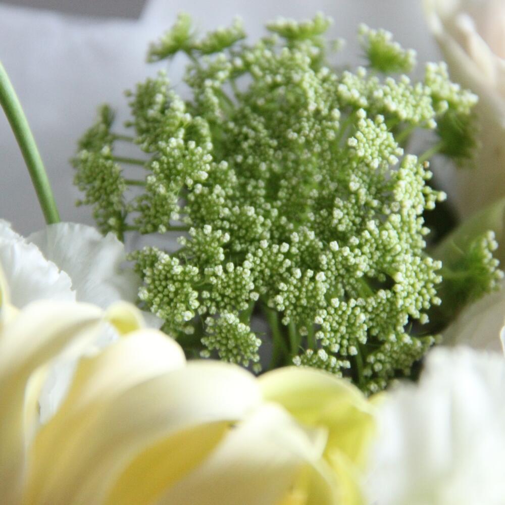 Ранункулюс – 3 шт.гербера кучерявая – 3 шт.Роза пионовидная – 3 шт.Роза кустовая пионовидная – 2 шт.Лизиантус – 3 шт.Амми – 4 шт.Упаковка – 1 шт.