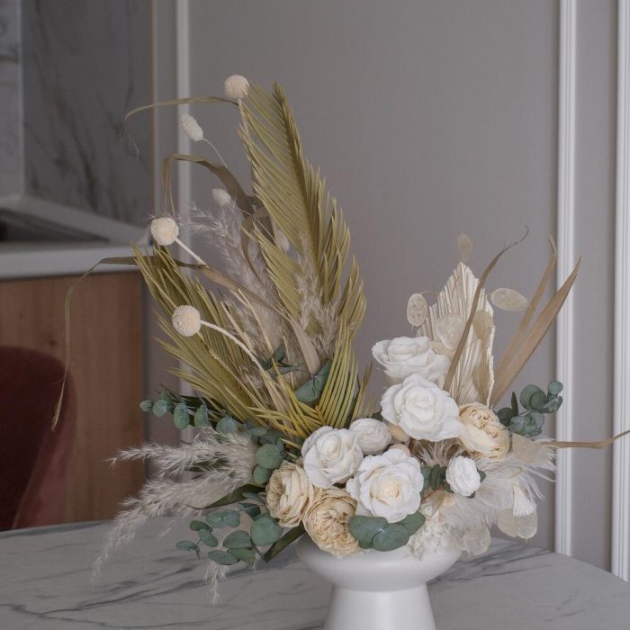Интерьерная композиция из стабилизированных цветов и сухоцветов