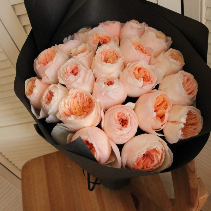Роза пионовидная – 23 шт.Бумага – 3 шт.Лента – 2 шт.