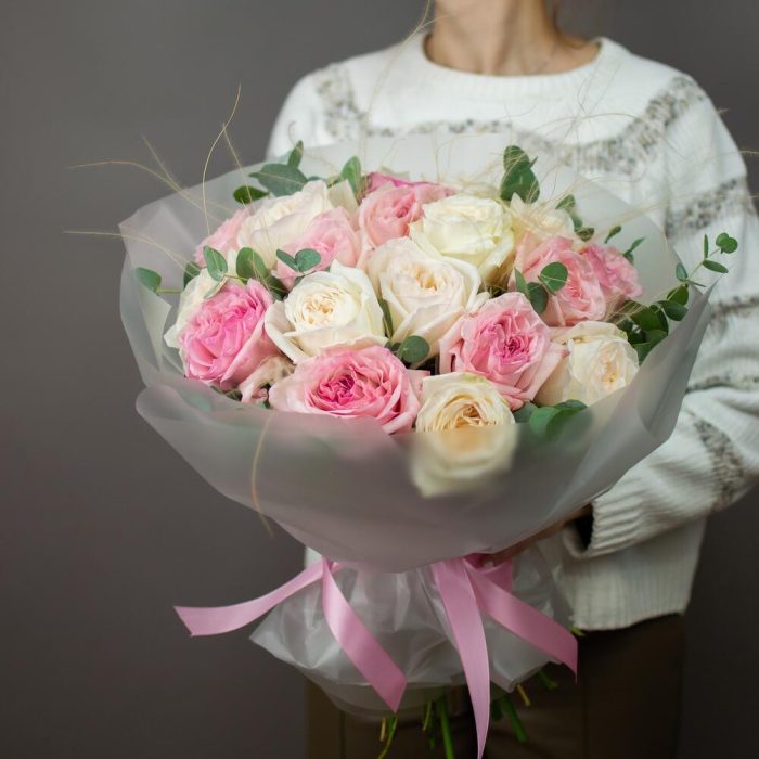 Нежный монобукет из ароматных пионовидных роз Охара