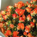 оранжевые кустовые розы – 13 шт. Открыточка с вашими пожеланиями – 1 шт. Упаковка дизайнерская – 3 шт.