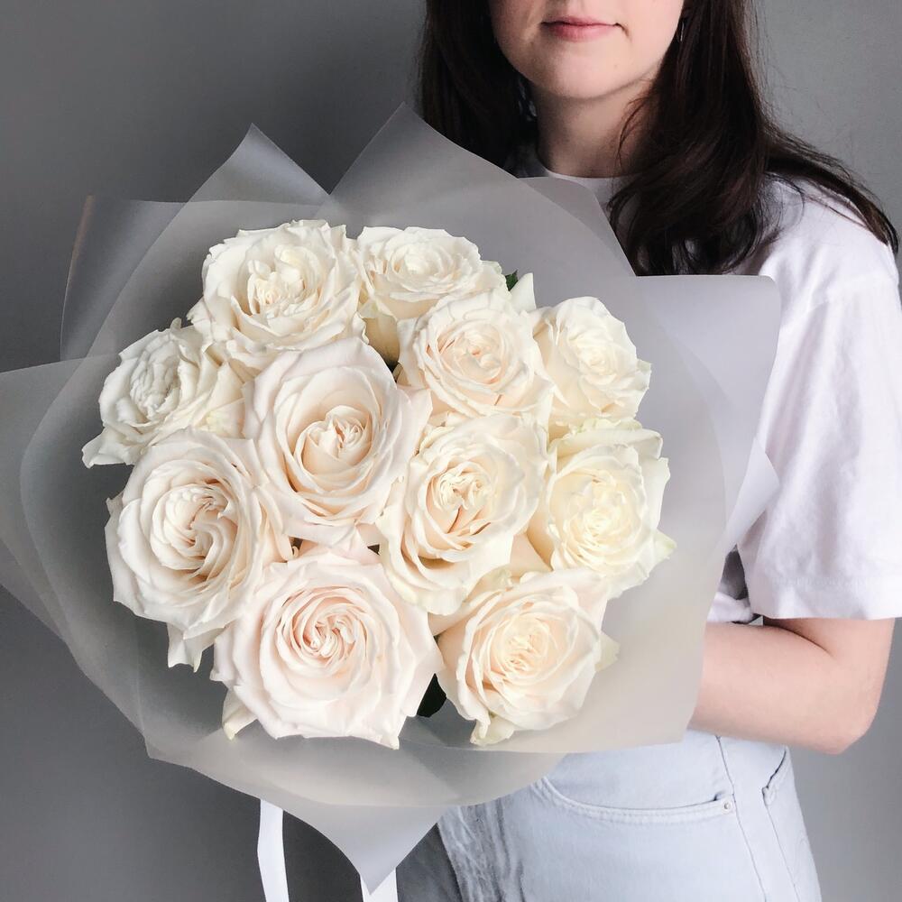 роза playa blanca премиум – 11 шт.Дизайнерская упаковка – 1 шт.Лента – 1 шт.