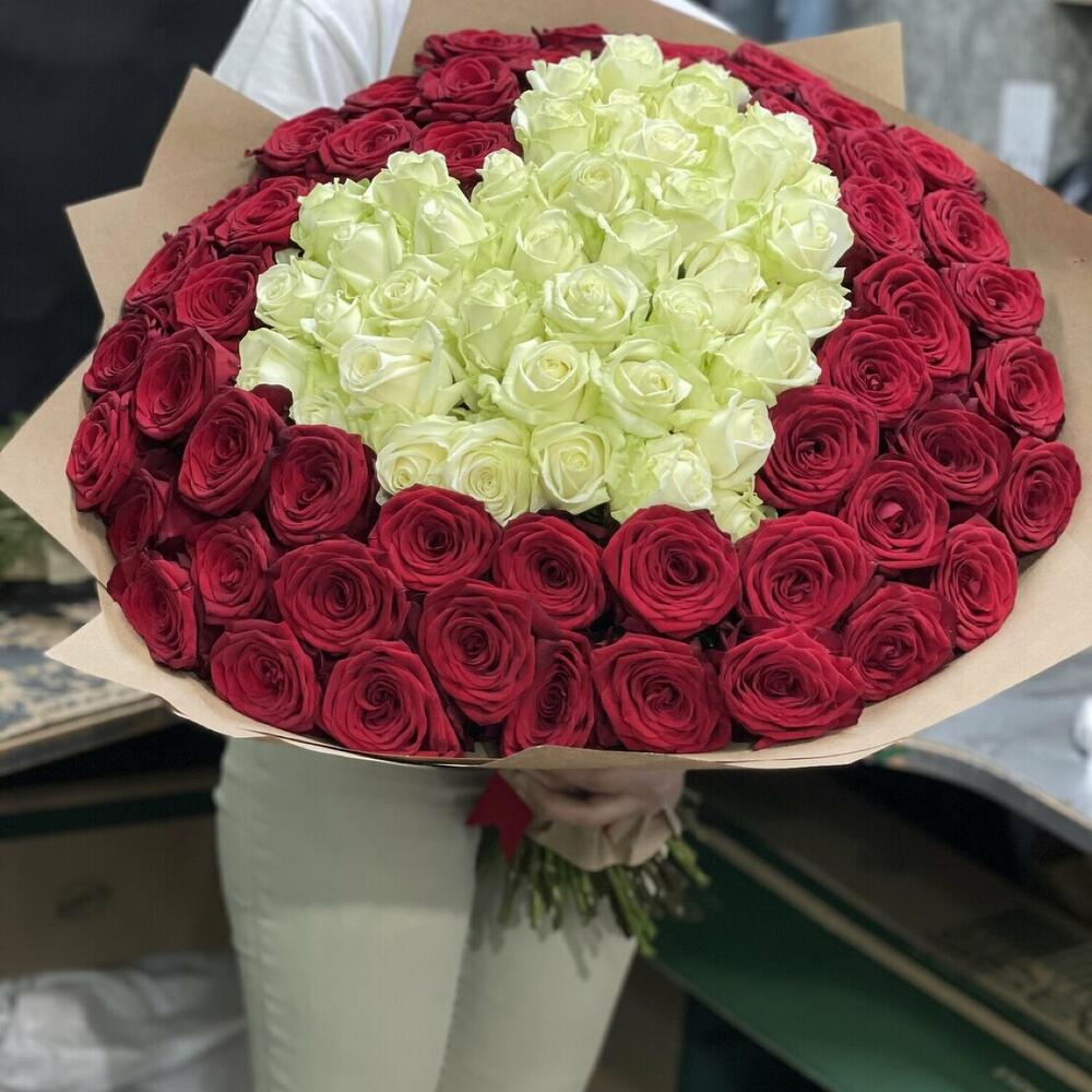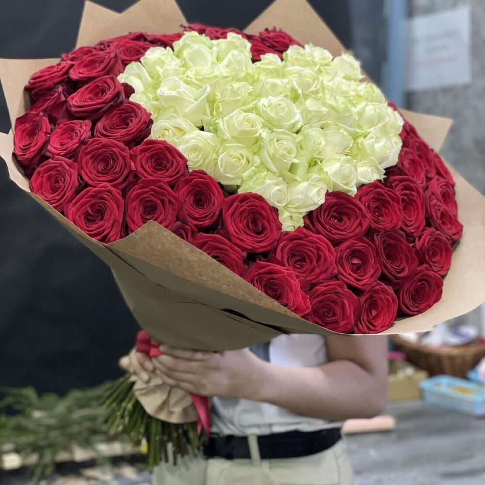 Огромное сердце любвиШок букет для вашей половинкиРозы Эквадор превосходят Россию и Кению по всем качествамСтойкие крупные ароматные