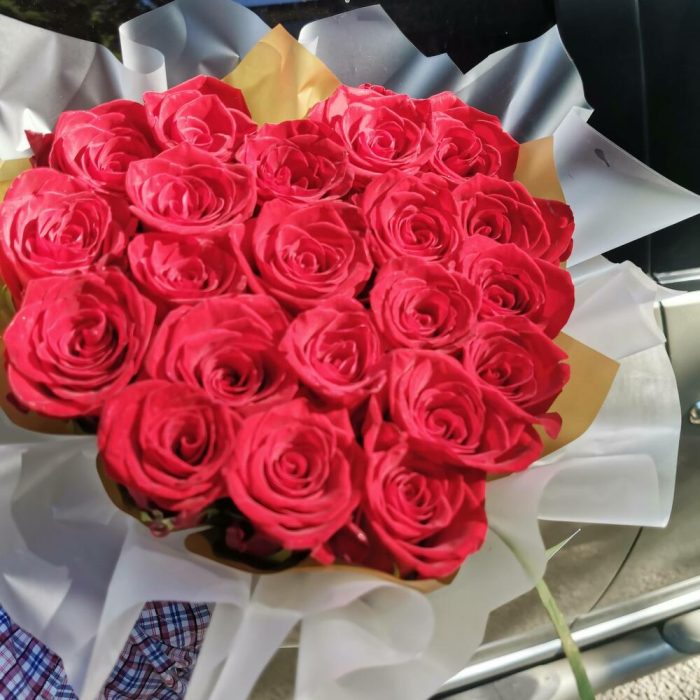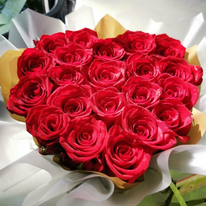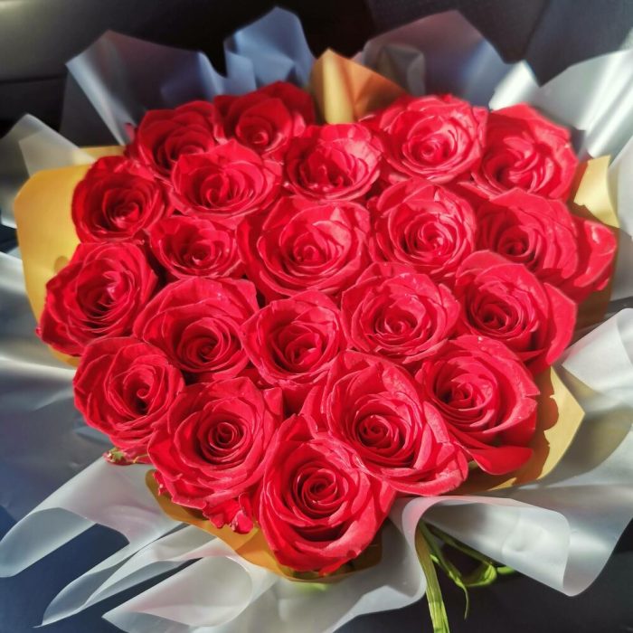 Красное сердце из 21 крупной красной свежей розы не оставит вашу принцессу равнодушной в праздник всех влюбленных и на день рожедния.