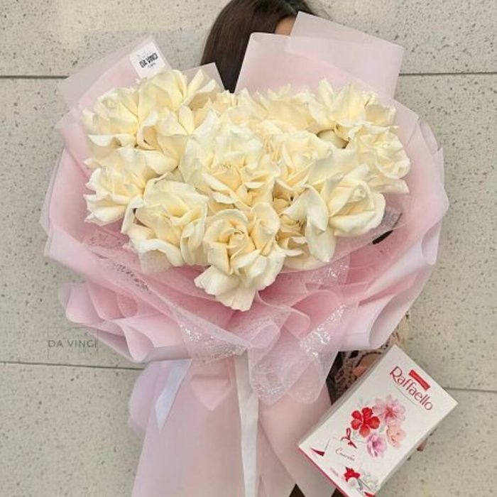 Сет “Nika” букет из 15 вывернутых роз и Raffaello
