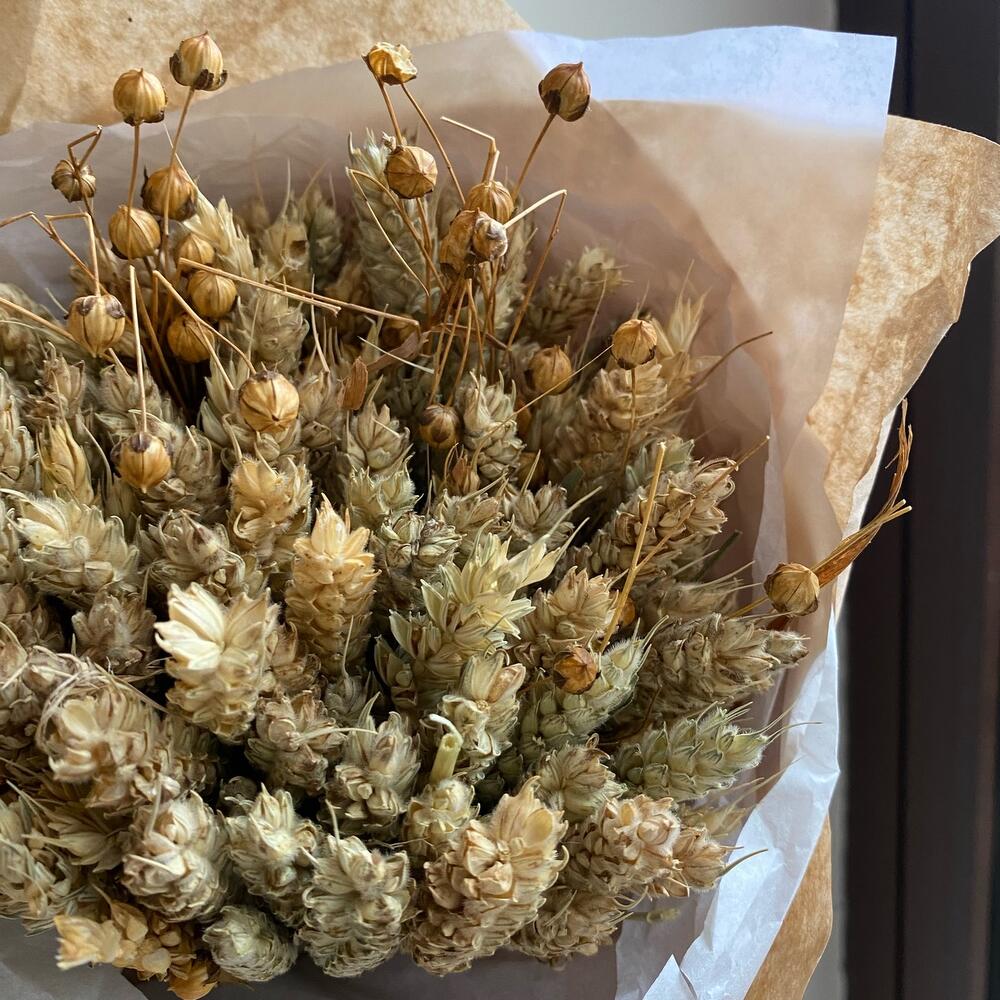Букет сухоцвет из пшеницы и льна