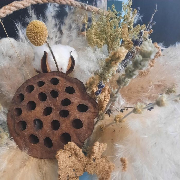 Деревянный ящик с воздушной кортадерией, загадочным лотосом и вечностойкими сухоцветами