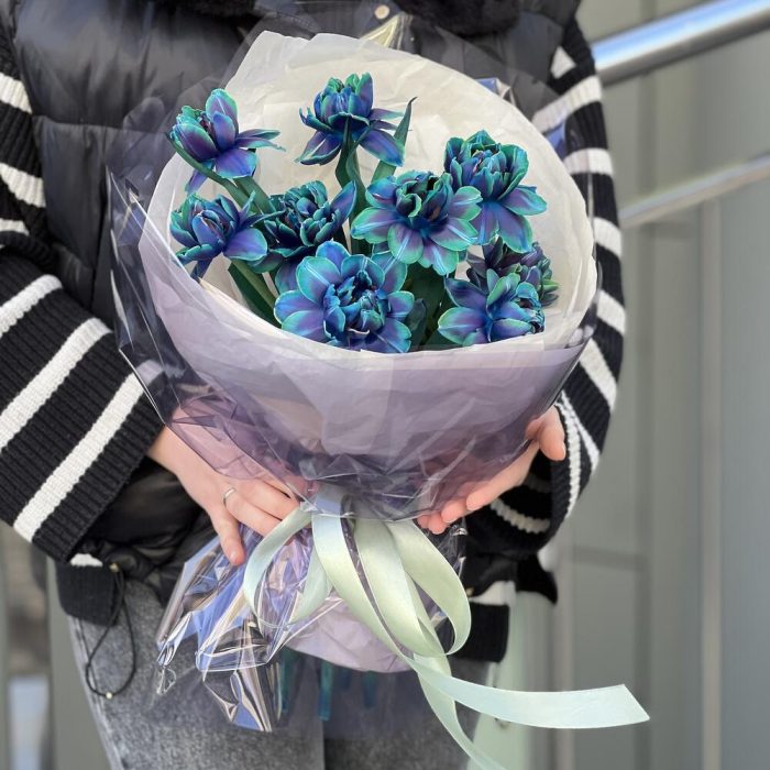 тюльпаны вип (крашенные) – 9 шт. Писташ – 2 шт. Оформление – 1 шт.